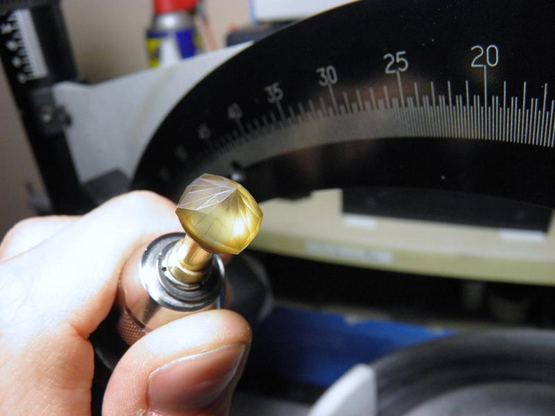 When the facet is completed and the grinding stops, the position of the needle on the meter is noted. As each subsequent facet in a series is cut, an audible tone denotes the identical needle position on the meter.